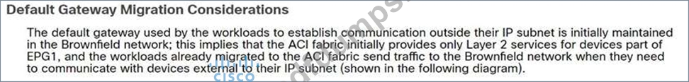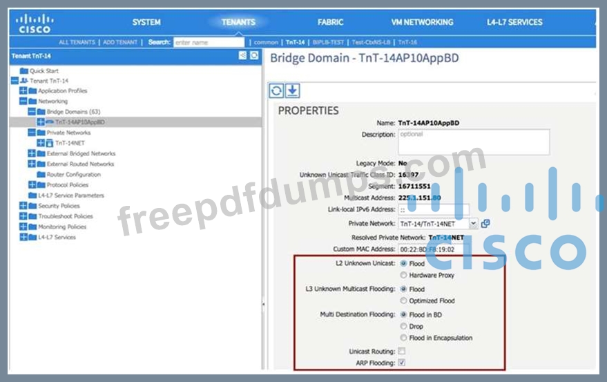 The existing network and ACI fabric have been connected to support workload migration. Servers will physically terminate at the Cisco ACI, but their gateway must stay in the existing network. The solution needs to adhere to Cisco's best practices. The engineer started configuring the relevant Bridge Domain and needs to complete the configuration. Which group of settings are required to meet these requirements?