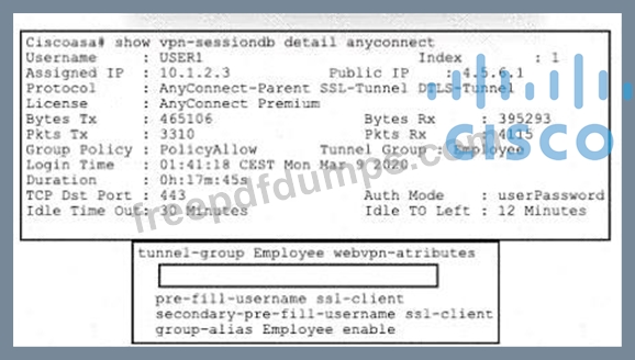 Refer to the exhibit. An engineer must implement a remote access VPN solution that provides user and device verification. The company uses Active Directory for user authentication and ID certificates for device identity. Users are currently able to connect using only a valid username and password, even if their computer is missing the required certificate.