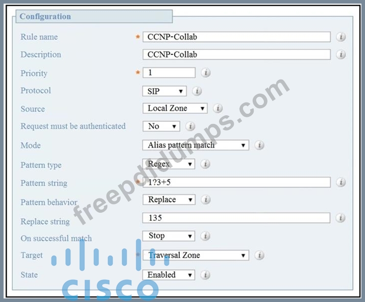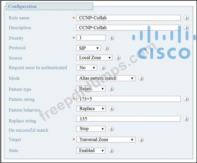 Refer to the exhibit. When configuring a search rule that routes calls to a zone, what occurs when 13358 is dialed?