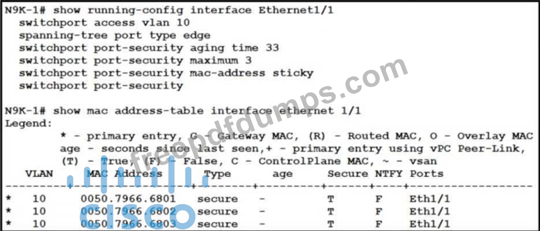 Refer to the exhibit. An engineer configures port security on a Cisco Nexus 9000 Series Switch.