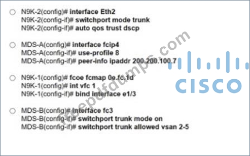 An engineer implements an environment with multiple traffic types on a consolidated I/O link between Cisco Nexus 9000 Series Switch and MDS 9000 Series Switch The configuration must meet these requirements: