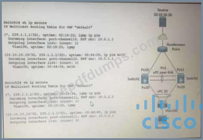 A host with a source address 10.10.10.10 sends traffic to multicast group 239.1.1.1. How do the vPC switches forward the multicast traffic?