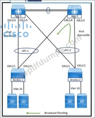 Refer to the exhibit. What happens to the broadcast traffic when it reaches aggregation switches?