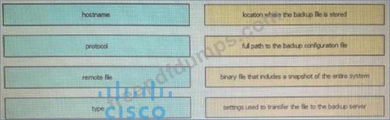 Drag and drop the fields for configuring a full state backup file of the Cisco UCS Manager from the left onto the descriptions on the right.