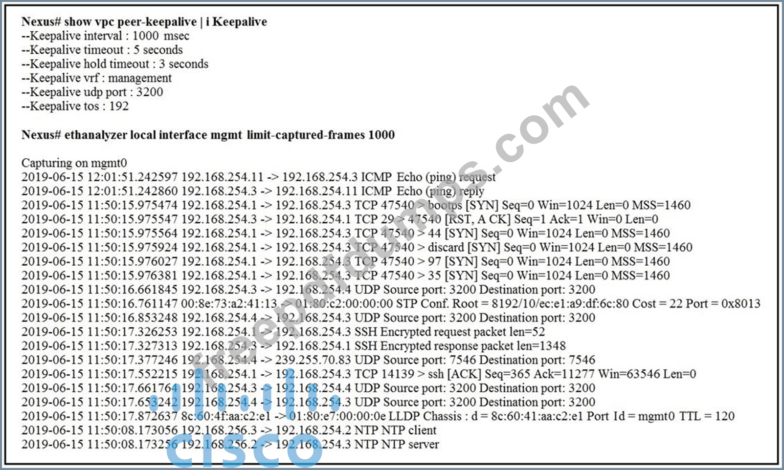 A flapping link issue has been reported on the vPC keepalive link. A packet capture has been activated on the Cisco Nexus switch.