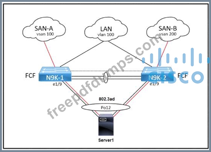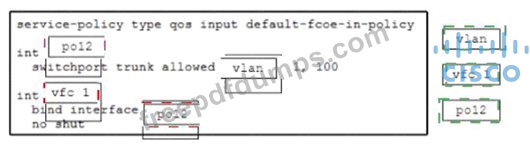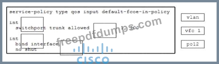 Refer to the exhibit. An administrator must complete the unified fabric configuration between Server1 and a pair of Cisco Nexus 9000 Series Switches Drag and drop the code snippets from the right onto the blanks in the code on the left to complete the N9K-1 configuration Snippets are used more than once.