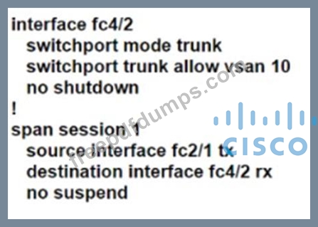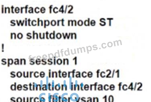 An engineer must configure a Cisco MDS 9000 Series Switch for traffic analysis from the storage array. The storage array is connected to the interface fc2/1 in VSAN 10 and the traffic analyzer to fc4/2. The capture file must include ingress and egress traffic between the switch and the storage array. Also, only traffic in VSAN