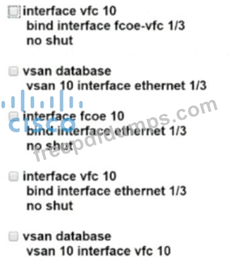 An engineer must configure FCoE on a Cisco Nexus switch. Which two command sets complete this configuration? (Choose two.)