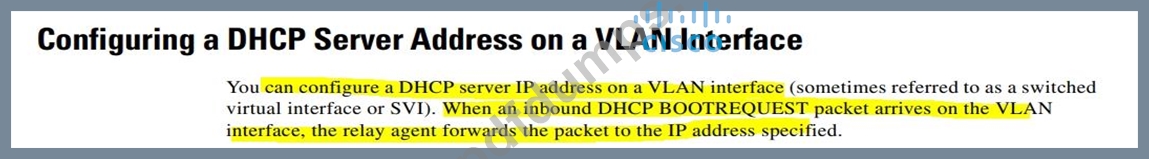 Which action is taken to ensure that the relay agent forwards the DHCP BOOTREQUEST packet to a DHCP server?