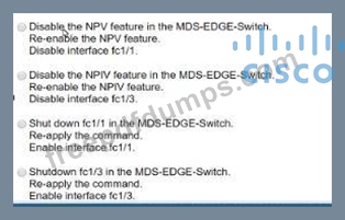 Refer to the exhibit. The MDS-EDGE-Switch and MDS-Core-Switch are configured with NPV and NPIV features The FLOGI from Cisco UCS is received by the MDS-Core-Switch on interface fc1/2. An engineer tried to move all traffic between the MDS-EDGE-Switch and MOS-Core-Switch from interface fc 1/2 to fc1/3, but the attempt failed. Which set of actions completes the configuration?