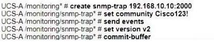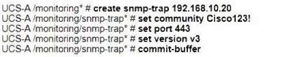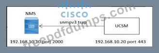 2000 must receive traps from the Cisco UCS Manager called UCSM. The community name is Cisco123! and the SNMP version must be the most secure.