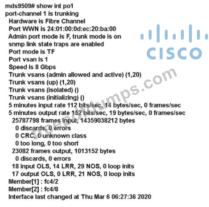 An engineer troubleshoots an Fibre Channel deployment on a Cisco MDS 9000 Series Switch. What does this output indicate about port channel 1?