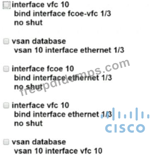 An engineer must configure FCoE on a Cisco Nexus switch. Which two command sets complete this configuration? (Choose two.)