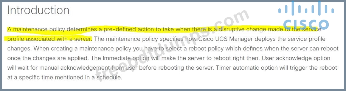 An engineer created a service profile in Cisco UCS Manager and associated it to a server. The engineer must create a policy if there is a disruptive change applied to the service profile Which policy type must be used to accomplish this goal?