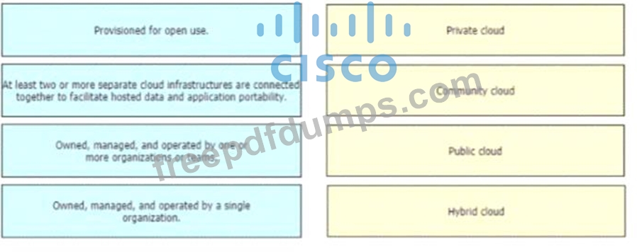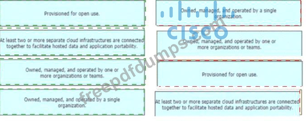 A network engineer is asked to describe the cloud infrastructure models from the perspective of their operation and access to resources. Drag and drop the descriptions from the left onto the appropriate.