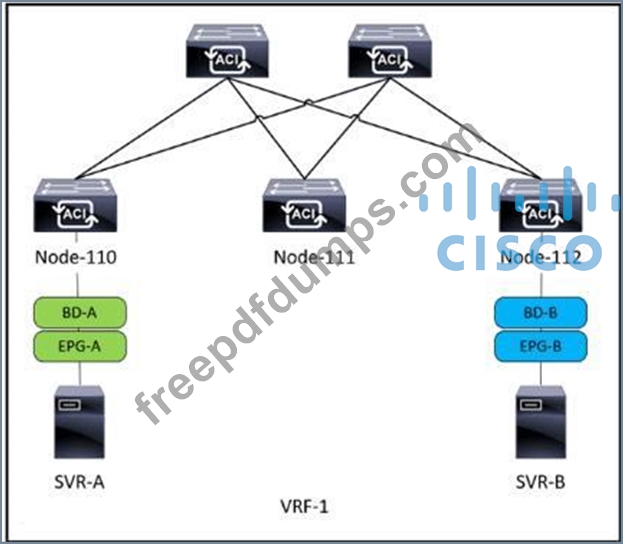 Refer to the exhibit. SVR-A in EPG-A/BD-A fails to reach SVR-B in EPG-B/BD-B. Which two conditions should be verified to analyze the traffic between the two EPGs? (Choose two.)