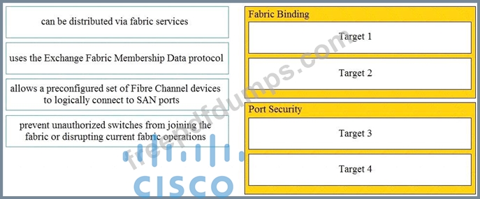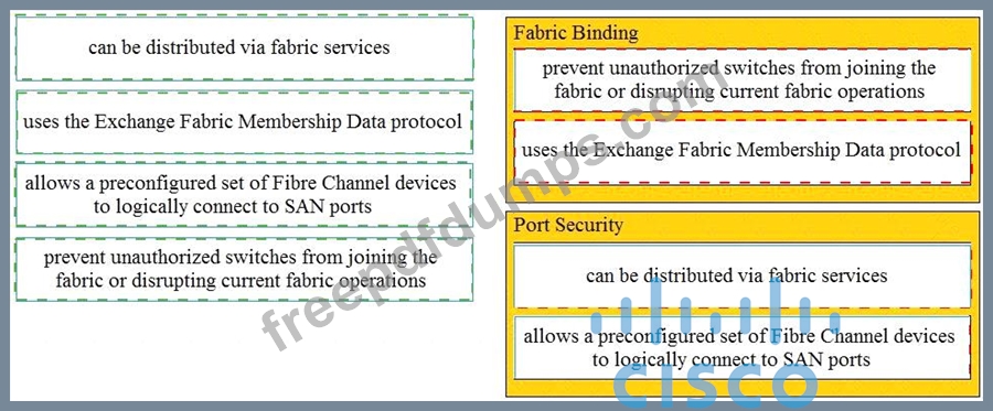 An engineer is implementing security on the Cisco MDS 9000 switch. Drag drop the descriptions from the left onto the correct security features on the right.