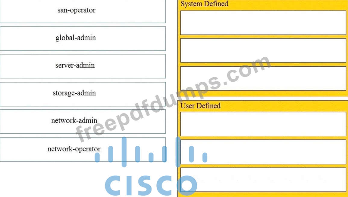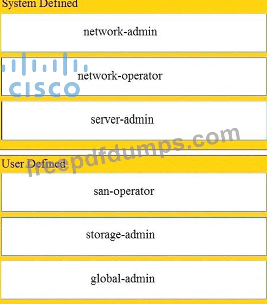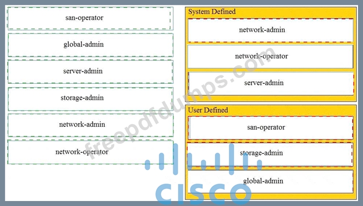 Drag and drop the Cisco MDS 9000 Series roles from the left onto the correct categories on the right.