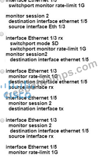 An engineer needs to monitor ingress traffic that arrives at interface Ethernet 1/3 that belongs to a Cisco Nexus