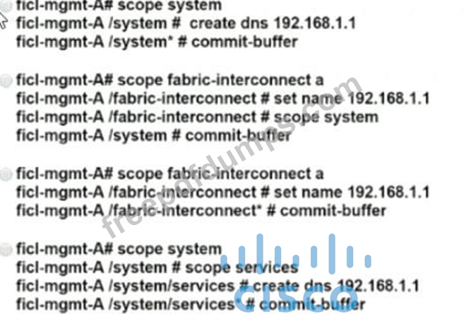 A DNS server with IP address 192.168.1.1 is deployed in a data center A network engineer must configure a Cisco UCS Fabric Interconnect to use this DNS. Which configuration should be applied?