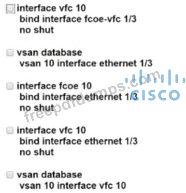 An engineer must configure FCoE on a Cisco Nexus switch. Which two command sets complete this configuration? (Choose two.)