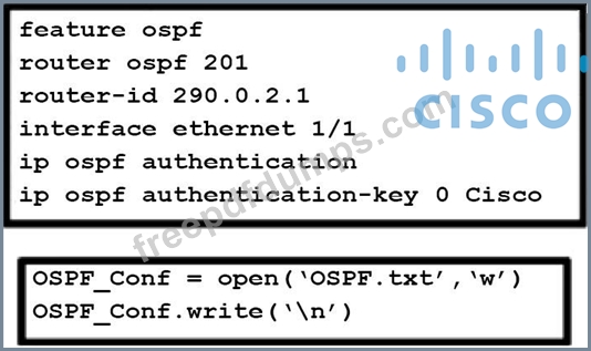 Refer to the exhibit. An engineer prepared the configuration of OSPF in a text file named OSPF.txt. The engineer decided to remove all OSPF configurations. Which Python code must be added to accomplish this goal?