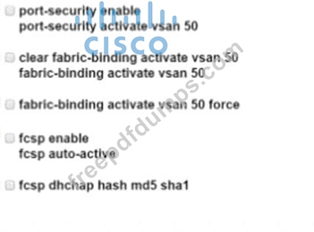 An engineer configures a storage environment for a customer with high-security standards. The secure environment is configured in vsan 50. The customer wants to maintain a configuration and active databases and prevent unauthorized switches from joining the fabric. Additionally, the switches must prevent rogue devices from connecting to their ports by automatically learning the WWPNs of the ports connected to them for the first time. Which two configuration sets must be used to meet these requirements? (Chose two.)