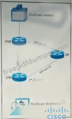As part of a redesign project, you must predict multicast behavior What happens to the multicast traffic received on the shared tree (*,G), if it is received on the LHR interface indicated*?