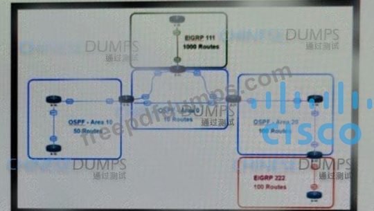 This network is running OSPF and EIGRP as the routing protocols Mutual redistribution of the routing protocols has been contoured on the appropriate ASBRs The OSPF network must be designed so that flapping routes m EIGRP domains do not affect the SPF runs within OSPF The design solution must not affect the way EIGRP routes are propagated into the EIGRP domains Which technique accomplishes the requirement?