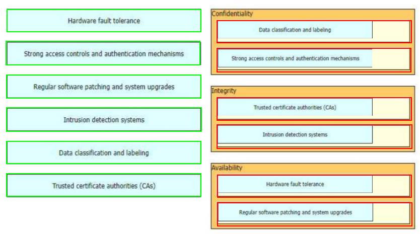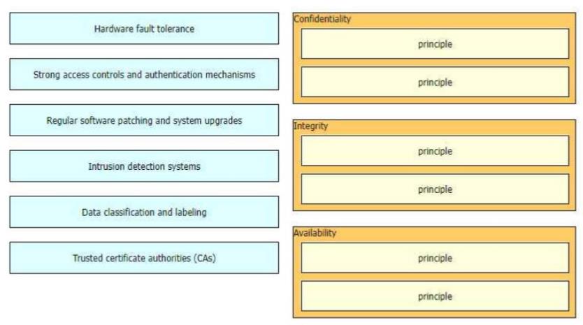The CIA triad is foundational to information security, and one can be certain that one or more of the principles within the CIA triad has been violated when data is leaked or a system is attacked Drag and drop the countermeasures on the left to the appropriate principle section on the right in any order