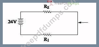 If both the resistors shown (R\ and R2) in the diagram below are of equal size, what is the voltage at the arrow?