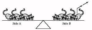 If a cat is removed from Side B of the seesaw, what happens to the cats on Side A?