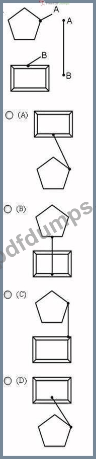 Determine which of the choices best solves the problem shown in the first picture and then mark the corresponding choice on your answer sheet. The problem is presented in the first drawing and the remaining four drawings are possible solutions.