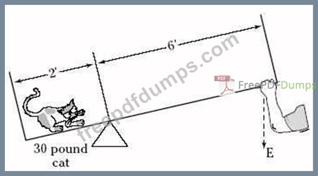 What effort must be used to lift a 30-pound cat (see the figure above) using a first-class lever? (Don't include the weight of the lever in your calculations.)