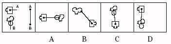 Determine which of the choices best solves the problem shown in the first picture and then mark the corresponding choice on your answer sheet. The problem is presented in the first drawing and the remaining four drawings are possible solutions.