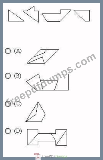 Determine which of the choices best solves the problem shown in the first picture and then mark the corresponding choice on your answer sheet. The problem is presented in the first drawing and the remaining four drawings are possible solutions.