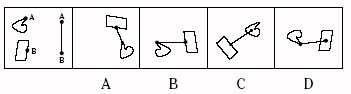 Determine which of the choices best solves the problem shown in the first picture and then mark the corresponding choice on your answer sheet. The problem is presented in the first drawing and the remaining four drawings are possible solutions.