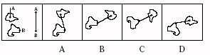 Determine which of the choices best solves the problem shown in the first picture and then mark the corresponding choice on your answer sheet. The problem is presented in the first drawing and the remaining four drawings are possible solutions.