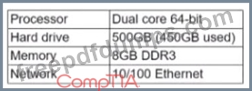 An end user submits a request for the IT specialist to install new software on a workstation The workstation has the following specifications.