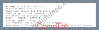 A security auditor needs to review the manner in which an entertainment device operates. The auditor is analyzing the output of a port scanning tool to determine the next steps in the security review. Given the following log output.
