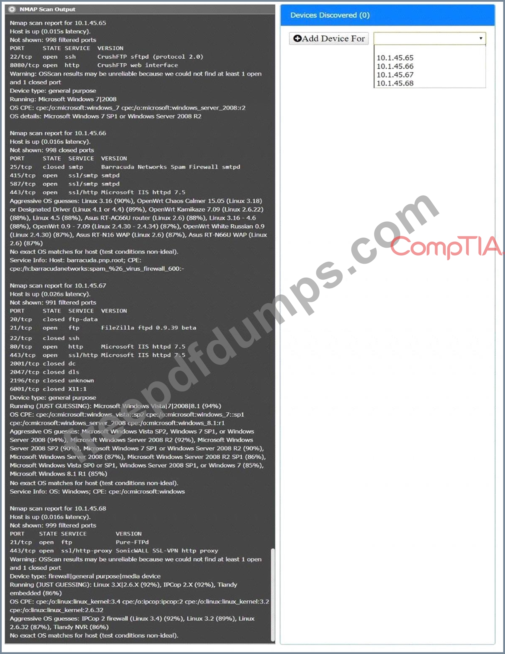 For each device found by Nmap, add a device entry to the Devices Discovered list, with the following information:
