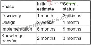 A partner is migrating a client from on-premises to a hybrid cloud. Given the following project status information, the initial project timeline estimates need to be revised: