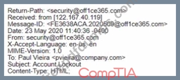 A security analyst is investigating a reported phishing attempt that was received by many users throughout the company The text of one of the emails is shown below:
