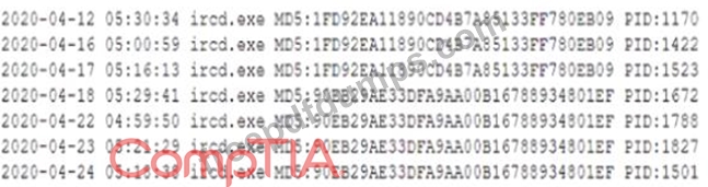 During a routine review of service restarts a security analyst observes the following in a server log:
