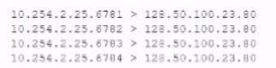 During routine monitoring a security analyst identified the following enterpnse network traffic:
