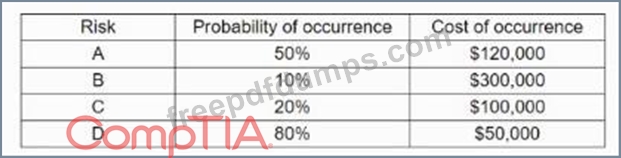 An organisation is assessing risks so it can prioritize its mitigation actions. Following are the risks and their probability and impact: