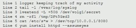 During a routine log review, a security analyst has found the following commands that cannot be identified from the Bash history log on the root user.