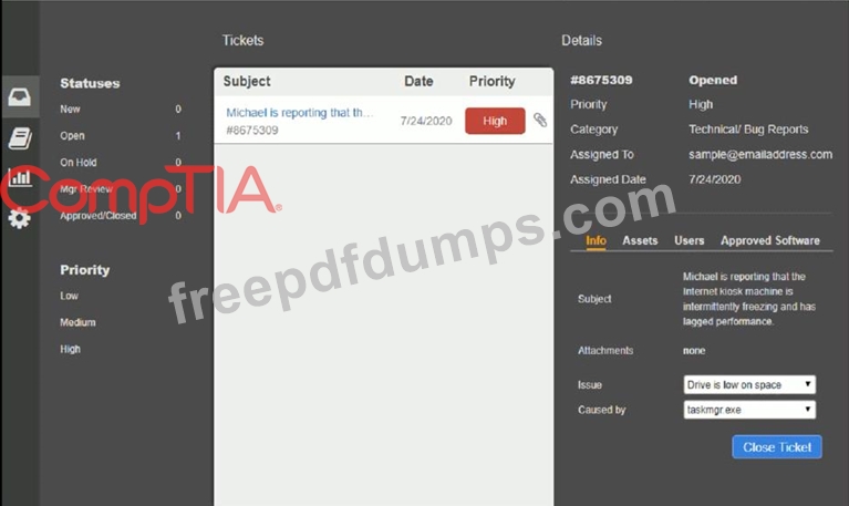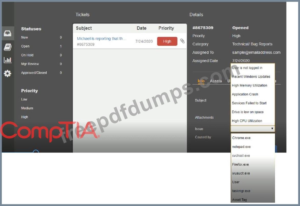 Click on me ticket to see the ticket details Additional content is available on tabs within the ticket First, select the appropriate issue from the drop-down menu. Then, select the MOST likely root cause from second drop-down menu If at any time you would like to bring back the initial state of the simulation, please click the Reset All button
