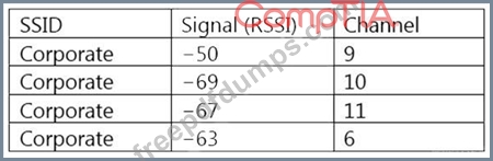 A technician is troubleshooting a client's report about poor wireless performance. Using a client monitor, the technician notes the following information: