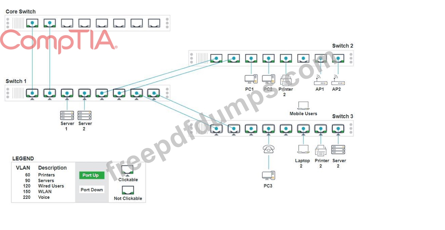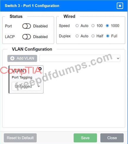 Click on the appropriate port(s) on Switch 1 and Switch 3 to verify or reconfigure the correct settings: